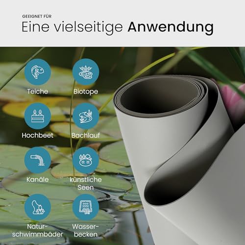 TeichVision – Premium PVC Pond Liner Light Grey – Thickness 1 mm – 4 m x 16 m/PVC Film Grey Suitable for Ponds, Biotopes, Natural Swimming Pools