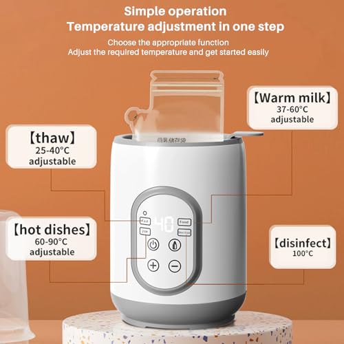 - Eight functions: The bottle warmer combines eight functions in one: fast heating, defrosting, keeping warm, steaming, baby food heating, timer function, adjustable temperature and anti-scalding basket. It can adapt to the needs of your baby and allows you to conveniently use different functions in one device, making daily life easier.