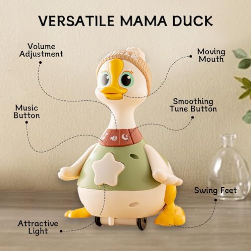 - Smart Features — The toy alerts you with sounds if the duck falls behind. It has an energy-saving standby mode that activates after 15 seconds of inactivity. With a star button on the belly, this toy emits a soft light that can help calm your baby's emotions and create a soothing environment for playtime