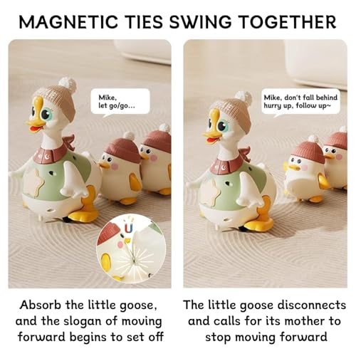 - Interactive Magnetic Play: With strong magnetic attraction, the ducklings can walk in a row, spin, and reverse direction. This encourages exploration and enhances motor skills, providing endless fun for curious little ones