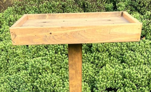 - Our bird tables are made from only sustainable approved timber. In order to keep the bird table dry and fresh, there are four drainage holes.
