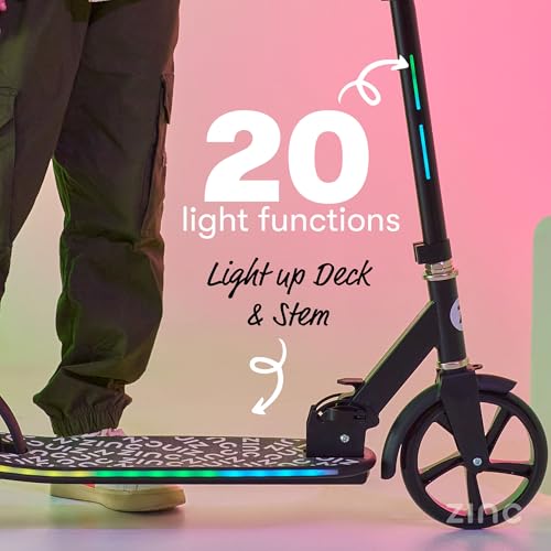Zinc Big Wheeled Light Up Brillz Scooter – Light Up Deck, Light up Stem, 20 Different Light Functions, Lightweight, Folding, Adjustable Height, Front & Rear Mudguards, 6+, Carries up to 75kg