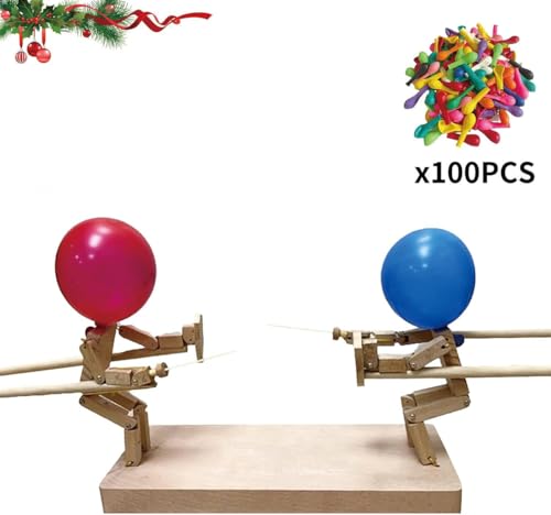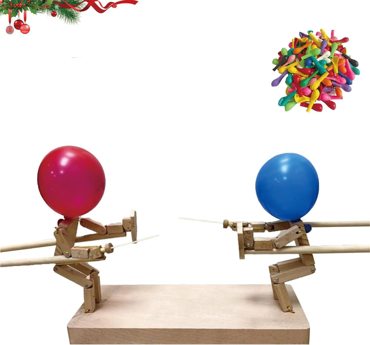 2-Player Balloon Bamboo Man Battle Game – Balloon Brawlers Game,Handmade Wooden Fencing Puppet Set for Exciting Balloon Battles,Fast-Paced Party Game for Kids and Adults (With 100 Balloons)