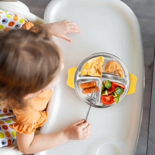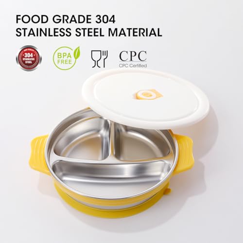 AIEVE Stainless Steel Baby Suction Plates, Stainless Steel Toddler Plate With Lid Divided Plate Anti-slip