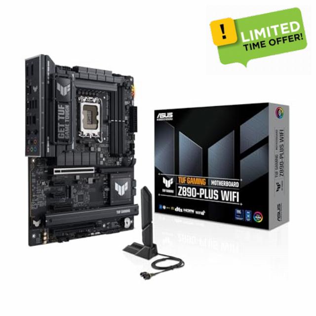 ASUS TUF GAMING Z890-PLUS WIFI Intel ATX motherboard, 16+1+2+1(80A) power stages, DDR5, PCIe 5.0 w/full support for next-gen GPUs,1xUSB4, front USB 20Gbps, 4 x M.2 slots, Wi-Fi 7, Intel 2.5 Gb
