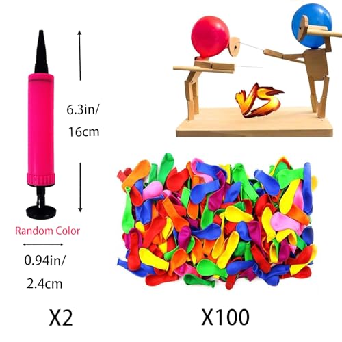Balloon Bamboo Man Battle Game, Wooden Fencing Puppets Balloon, Handmade Wooden Fencing Puppets for 2 Players, Balloon Brawlers Game, Fast-Paced Balloon Fight Party Game(100 Balloons+2 balloon pump)