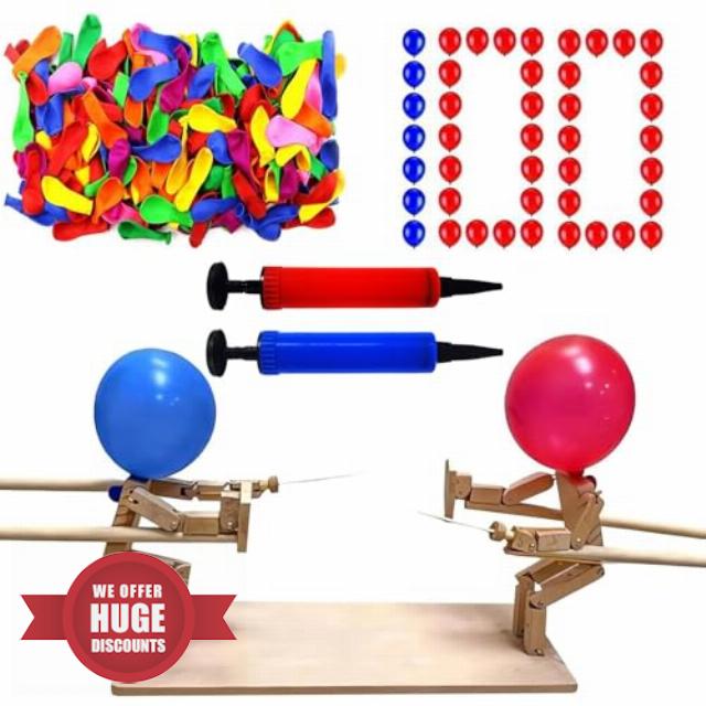 - ️Exciting Two-Player Action with Balloon Brawlers: Experience electrifying duels as you engage with the "Balloon Bamboo Man Battle." This balloon fencing game features unique wooden fencing puppets balloon that offer a thrilling competition for two players, ensuring lively gaming nights filled with laughter and excitement. The color of the balloon pump is random.