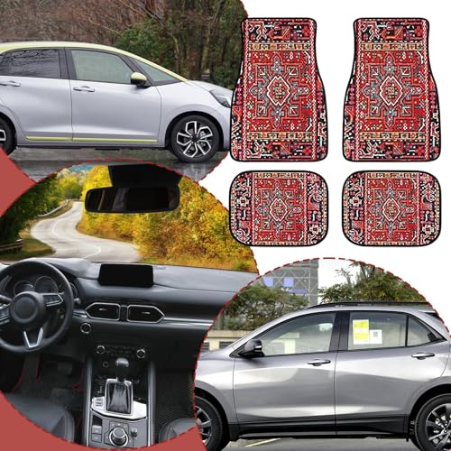 Bohemian Car Mats – 4 Car Mats Front Rear Full Set | Unique Non-Slip Heavy Duty Rugs | Comfortable Boho Car Accessories, Retro For Men Women Car SUV Truck, Auto Ca