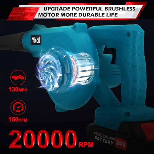 - 【High-Performance Brushless Motor】: Our cordless leaf blower features an advanced brushless motor and turbofan technology, delivering a powerful airflow with speeds up to 20,000 RPM and 150 CFM. This high-efficiency motor makes yard and home maintenance easier and more effective, while also tackling pet hair with ease.