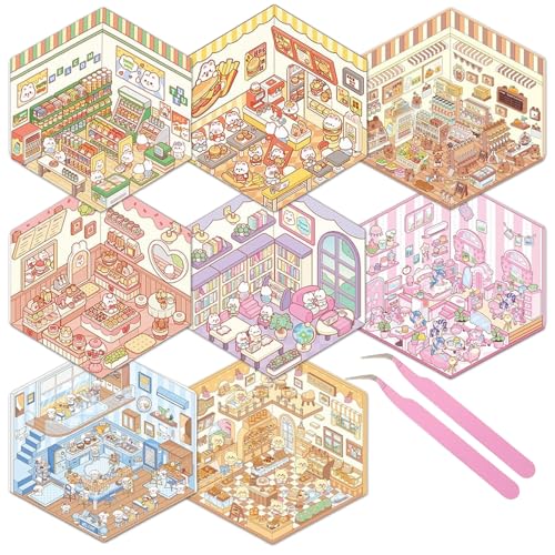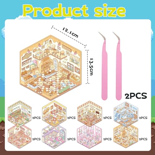 1.Versatile scene possibilities: The Cosmeria 3D sticker set includes eight different scene backgrounds and matching stickers to create varied worlds. From a bunny supermarket to pony cosiness – your children can let their imagination run wild. Includes two tweezers to facilitate precise sticker placement and encourage creativity