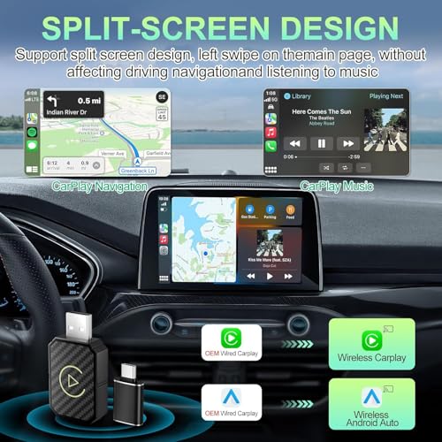 - 【No installation and ready to use】-The product adopts plug-and-play design, just need to plug in, pairing, and can be connected to play, and then every time you get into the car, it can be connected automatically. Easy to realise the carplay and Android Auto function, really buy and use.