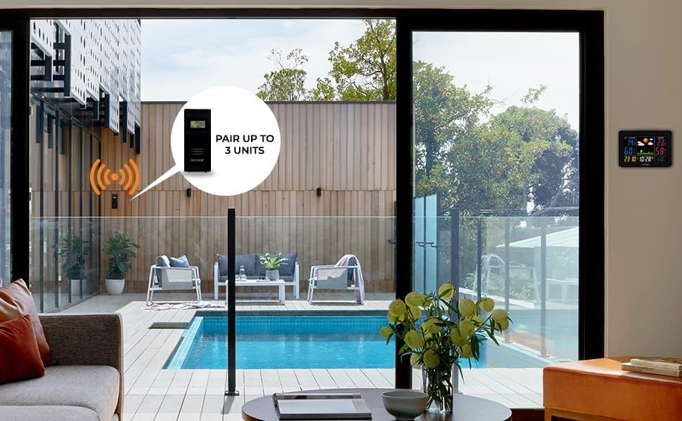 Users can easily switch between Celsius and Fahrenheit for temperature readings. The included outdoor sensor transmits data wirelessly to the main unit, allowing for remote outside weather monitoring.