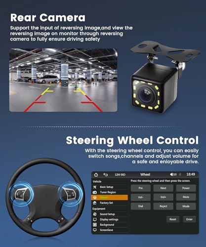- 【HD Reversing Camera Input & Steering Wheel Control】This car stereo receivers with an HD waterproof reversing camera. Reverse image will be displayed on the screen automatically when you are reversing. Double din car audio receivers also support steering wheel control, through it you can control the functions that you need,adjust volume, answer calls, quickly switch songs, etc,greatly improves safety while driving.