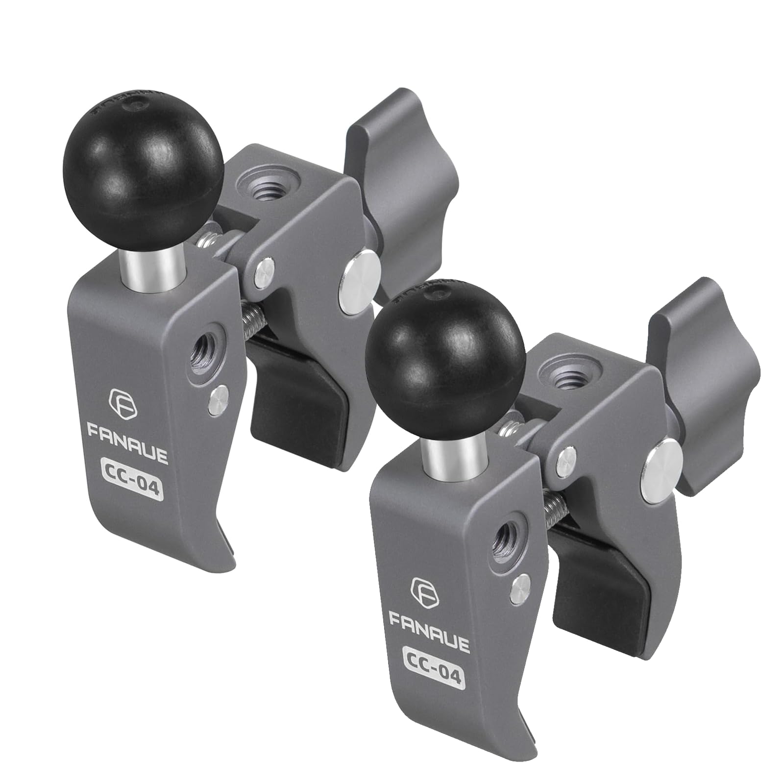 FANAUE 2 Pack Aluminum Alloy Handlebar Clamp Mount Base with 1'' Ball for Rails 0.5″ to 2.0″ in Diameter, Compatible with RAM Mounts B Size Double Socket Arm & Bike Motorcycle Phone Mount Holde