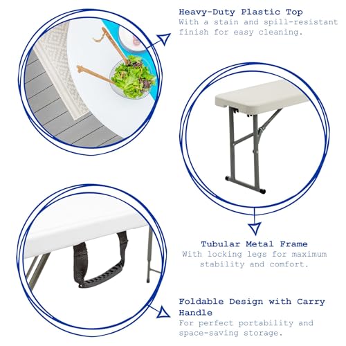 Harbour Housewares Folding Camping Picnic Benches – 180cm (6ft) – Black – 2x Foldable Portable Plastic Outdoor Garden Dining Furniture