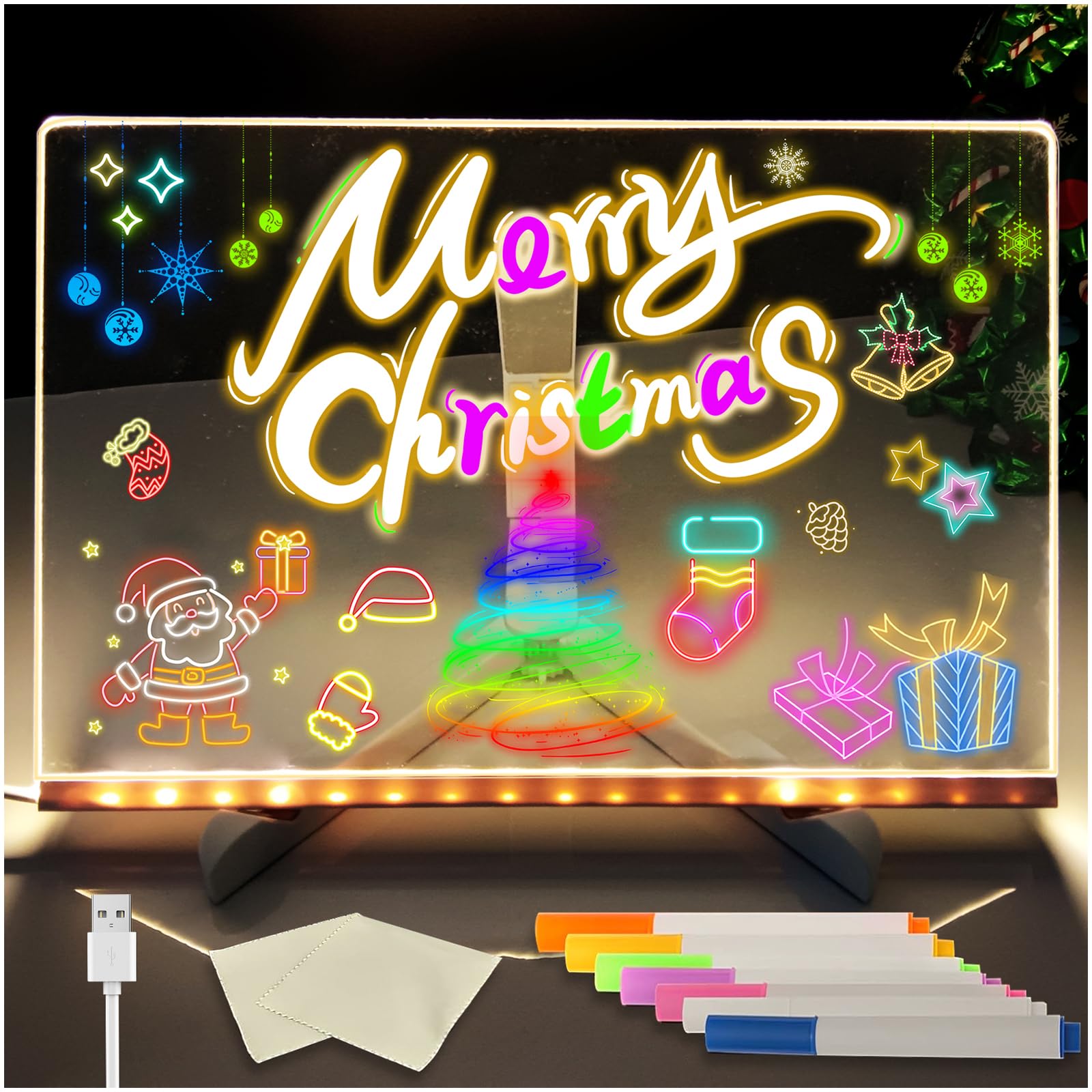 KutaKuta LED Note Board with 7 Colors Pen, Magic Light up Drawing Board Led Drawing Board Led Note Board with Colours, Dry Erase Board with Stand Light up Acrylic Drawing Board for Home Cafe Christmas