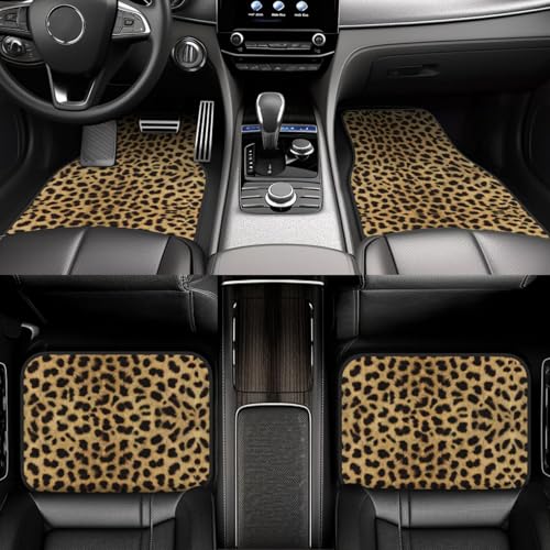 Leopard Animal Print Print Car Foot Mat Four-Piece Set Full Set With Non-Slip Rubber Backing