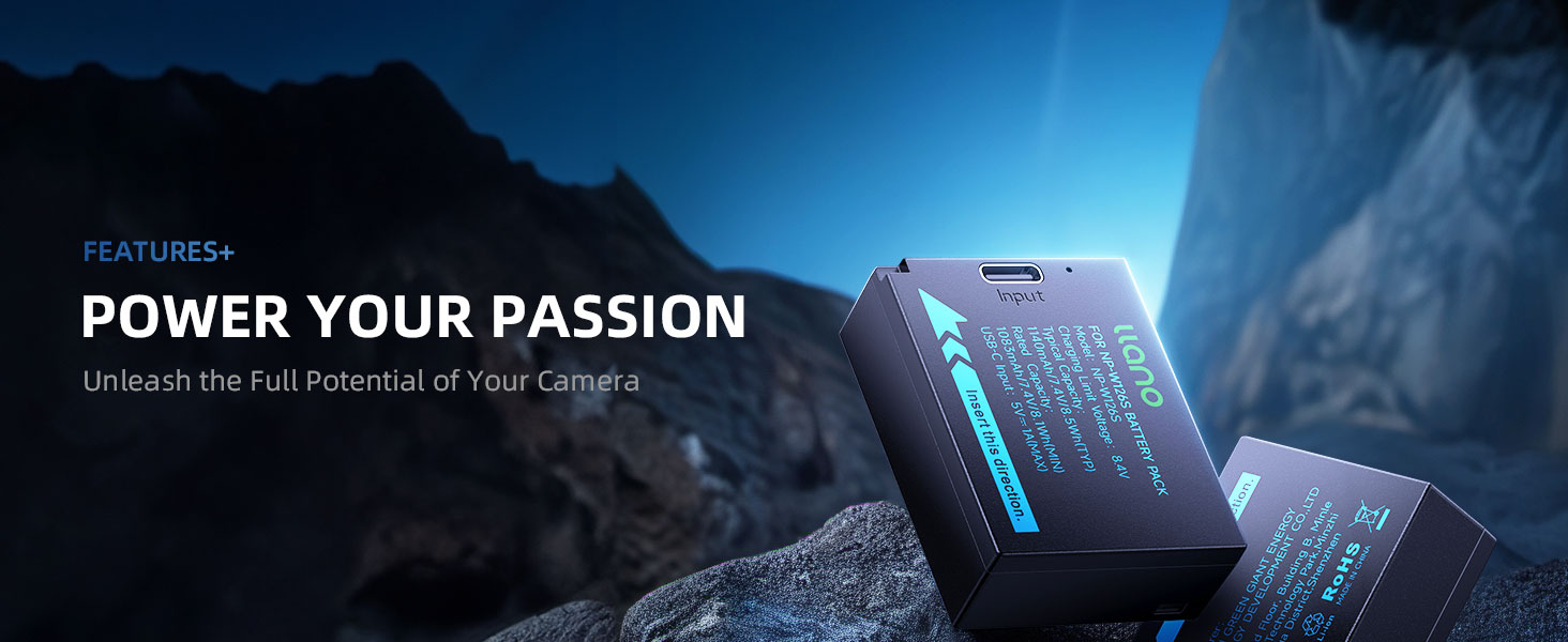 llano NP-W126S Battery Pack (USB-C Input) Compatible with Fuji X-T100, X-T200, X100F, X100V, X100VI, X-S10, X-A5, X-A10, X-E4, X-Pro2, X-Pro3, X-T1, X-T2, X-T3, X-T10, X-T20, X-T30 II – Black