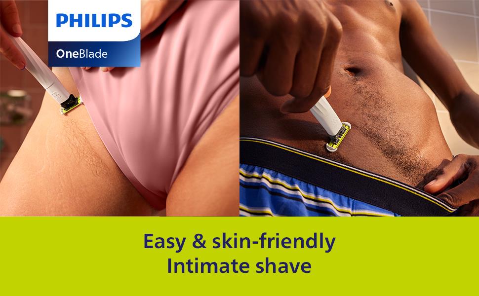 Philips OneBlade Intimate, Designed for Pubic Grooming, Trim and Shave with Extra Skin Protection, Model QP1924/3