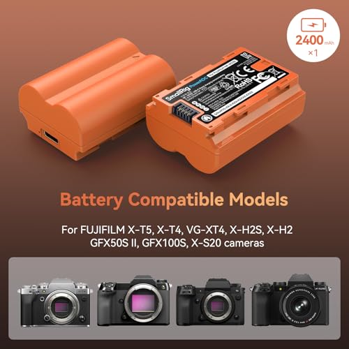 SMALLRIG NP-W235 Battery 2400mAh USB-C Camera Battery for Fujifilm X-T5, X-T4, GFX100S, 2.5H Full Charged Camera Battery for Fujifilm X-T5, X-T4, X-H2S, X-H2, GFX50S II, VG-XT4, X-S20, Orange – 497