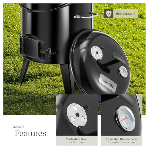 - ADJUSTABLE HEAT & AIRFLOW: Adjust your cooking like a pro with this barbecue grill, equipped with a lockable fire flap, ventilation slider, and tall chimney that let you control the oxygen supply with precision. Fire it up with coal or wood in the combination combustion chamber and enjoy fuss-free cleaning with the handy ash container. With a large 17-litre capacity, the cooking pot is ideal for use as a soup maker or a food warmer, perfect for warm meals on cold winter days.