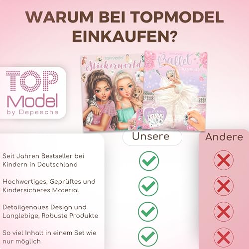 The TopModel Stickerworlds Ballet and Kitty and Dog bring imaginative sticker fun to any child’s room. The Stickerworld Ballet contains elegant dancers and dreamy ballet backdrops that inspire you to create your own stories and scenes. Ideal for those who love ballet and fashion and want to express their creativity in a playful way. The Stickerworld Kitty and Dog complements the set with cute animal motifs and accessories that make the heart of any animal lover beat faster. Here little creatives can create their favourite scenes with cats, dogs and matching accessories. Whether on paper, stapling or as a personal decorative highlight – this set promotes imagination playfully and offers endless possibilities for creative design. Perfect for all TOPModel fans and ideal as a gift for creative minds who love cute motifs