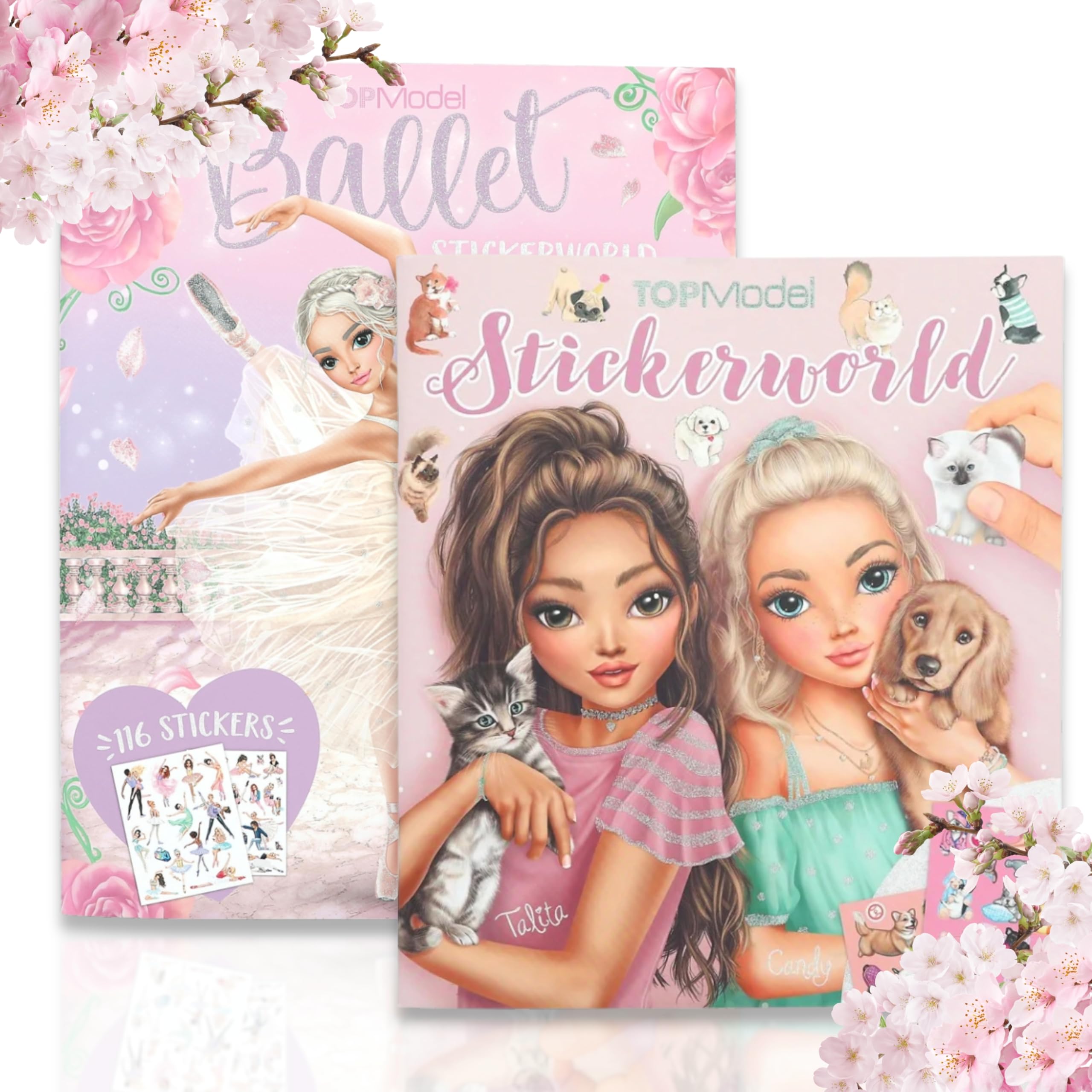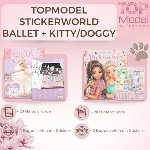 TOPModel Stickerworld Ballet + TopModel Stickerworld Kitty and Doggy – Creative Sticker Set for Girls with Cute Animal and Ballet Motifs, Perfect for Imaginative Play and Decoration!