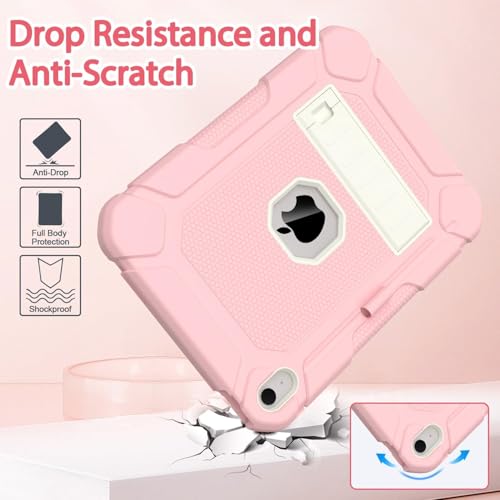 TOPWANT Case for iPad 10th Generation 10.9 inch 2022, iPad 10th Generation Case with Kickstand & Pencil Holder, Heavy Duty Shockproof Rugged Protective iPad 10th Gen Case, Pink