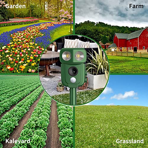 - 【Safe and harmless】: Ultrasonic Fox Repeller contains no chemicals that threaten human health, only outputs ultrasonic waves to repel animals, won't hurt your pets, and accompanied by an alarm sound, it can effectively repel birds, rabbits, foxes, squirrels and other wild animals.