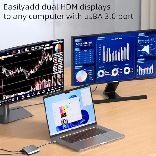USB 3.0 to HDMI Splitter Extended Display Dual Monitors, USB 3.0-A/C to Dual HDMI Adapter 4K@30Hz+1080p@60Hz for M-acBook/M-acBook Pro Air Dell (MST Support MacOS/Windows)