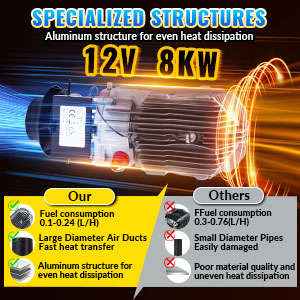 - 【All-in-one Diesel Air Heater】- With a power range of 8KW, our diesel air heater ensures customizable heating to suit your specific needs. Designed to temperatures ranging from -40 °C to +80 °C (-40 – 176 ℉), stay comfortably warm in your vehicle, no matter the outside temperature.