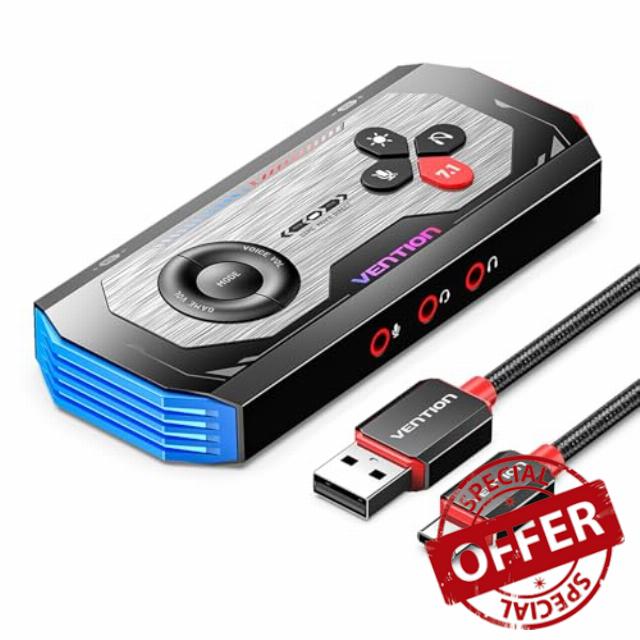 - Immersive 7.1 Surround Sound Experience: The VENTION 7.1 Gaming DAC External USB Sound Card uses advanced audio processing technology to enable your device to support virtual 7.1 surround sound. This creates an immersive auditory experience, allowing you to perceive sound from various directions clearly, whether you're gaming or watching movies, enhancing your overall immersion.
