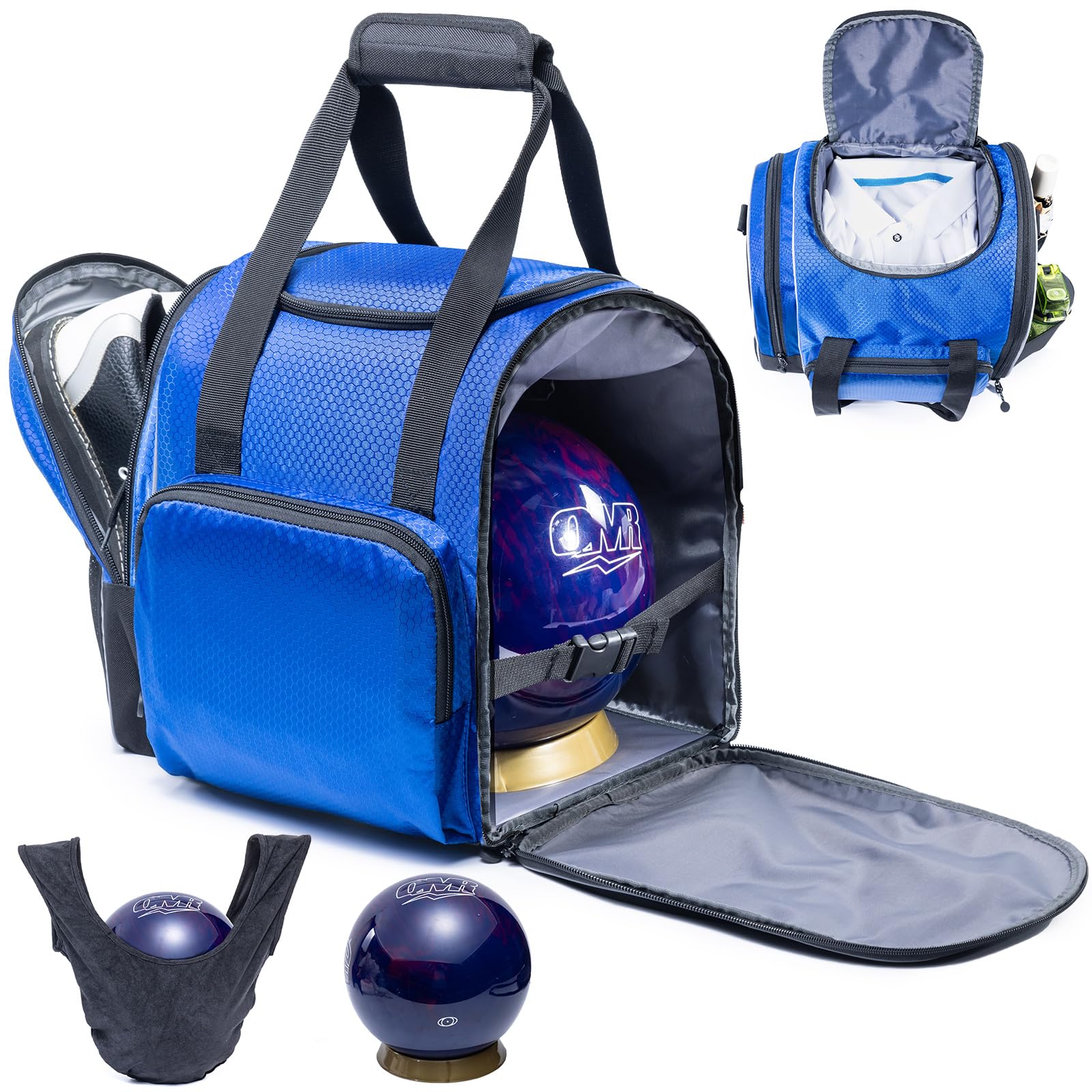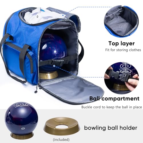 - UNIQUE DESIGN FEATURES — Our bowling bag is designed with a wide opening on the side, making it easy to access the bowling ball. The top layer compartment is ideal for storing bowling accessories and belongings. The side pocket can accommodate shoes up to size 15, a towel, or water bottles, adding to the bag's functionality and convenience.