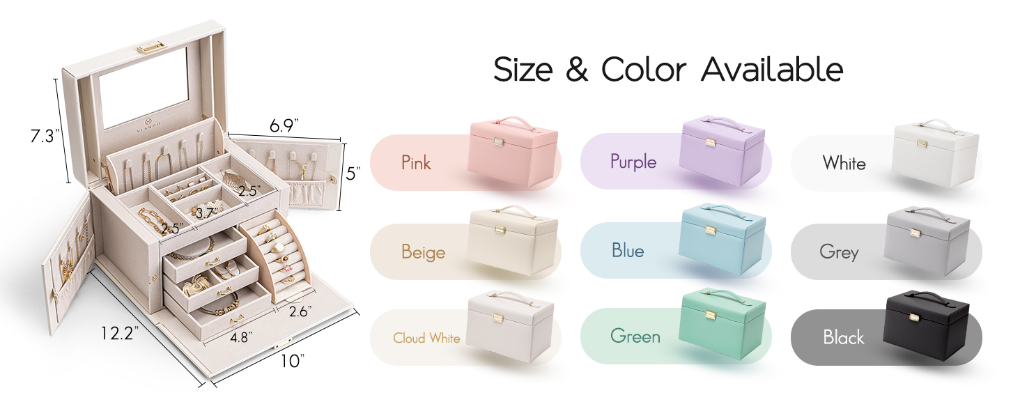 - Multi-functional Storage Design – The Vlando jewellery box features 3 small accessory drawers, 2 extendable necklace boards and 1 extendable ring holder. With customizable storage compartments, you can easily organize all your jewelry in one stylish box.