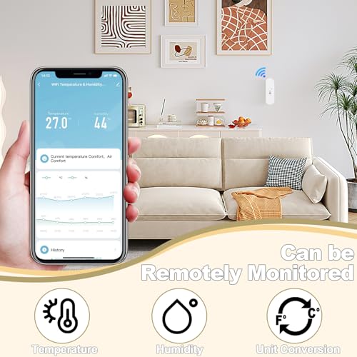 - Remote Control & Smart Home Integration: WiFi thermometer hygrometer compatible with Alexa, Google Assistant, SmartHome devices. Use voice commands to check room temperature or humidity and automate scenes for optimal comfort. Perfect for smart home ecosystems