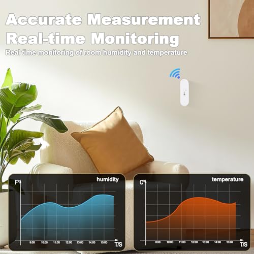 - Custom Alerts for Temperature & Humidity: Set custom temperature and humidity thresholds in the app. Get instant phone notifications if readings go beyond preset limits, WiFi temperature and humidity monitor sensor helping you maintain ideal conditions for baby rooms, indoor plants, pools, and pet habitats