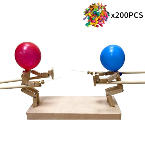 Wooden Fencing Puppets Game, Handmade Balloon Brawlers Balloon Battle Game for 2 Players, Fast-Paced Whack Boom Balloon Fencing Game Wood Balloon Brawlers Wars Game for Christmas Party (200 Balloons)