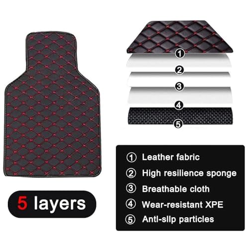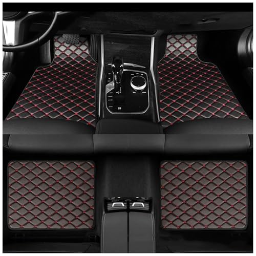 XATHKJOE 4 PCS Car Floor Mats, For MG HS Automatic 2019-2024 Customized Leather Car Floor Mats All Weather Waterproof Non-Slip Carpet Floor Matts Car Accessories,B/Black Red