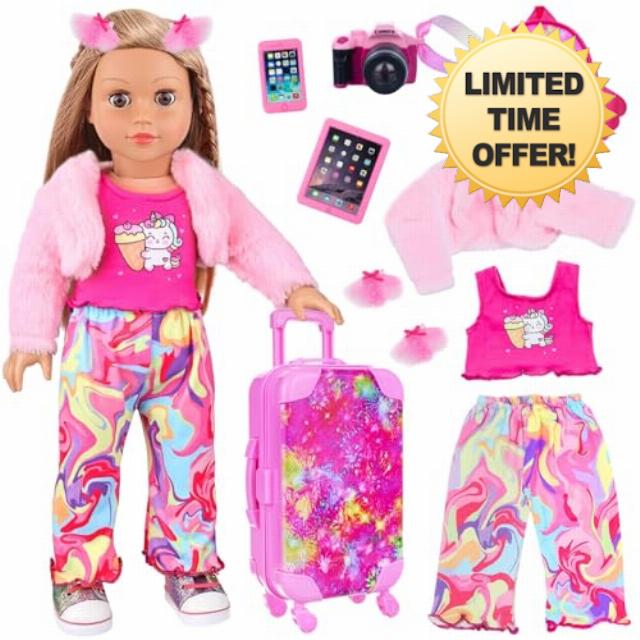 - 【An Ideal Gift】This fashion 18 inch doll travel suitcase set is the perfect addition to your kids dollhouse, doll accessories. It is suitable for Christmas gifts, birthday gifts, New Year gifts, commemorative gifts and holiday gifts for children.