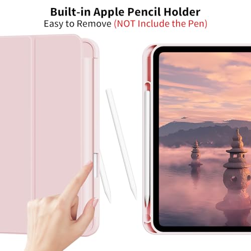 ZKTUYU for iPad 10th Generation Case 10.9 inch 2022, Slim Stand Protective Cover with Pencil Holder, Support Touch ID, Auto Wake/Sleep, Tti-fold Stand Case Model A2696 A2757 A2777, Pink