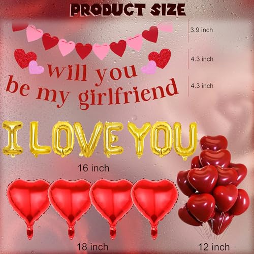- Unique Design:Elevate Your Celebrations With Our Stunning I Love You Balloons And Romantic Will You Be My Girlfriend Banner.This Combination Of Love Heart Anniversary Decorations Will Make Special Day Unforgettable,For A Wedding,Engagement,Valentine'S Day