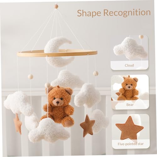 - Charming Plush Design: Adorned with cute brown bear plush figures, fluffy clouds, pentagrams, and adorable bells, this mobile adds a whimsical touch to your nursery decor. Its delightful design creates a soothing atmosphere while enhancing the room's aesthetic.