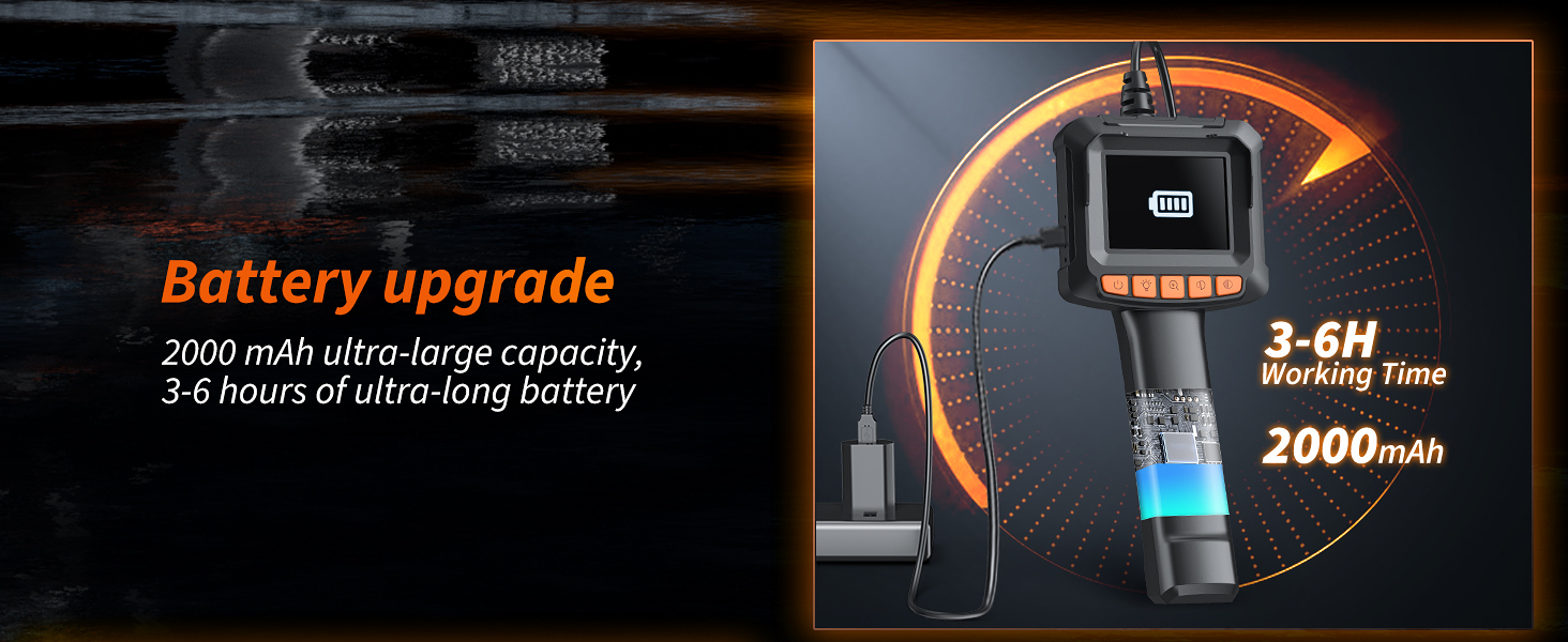 - Long-lasting Battery Life: The endoscope is equipped with a built-in 2000mAh rechargeable lithium battery, allowing you to use the camera continuously for up to 3.5 hours, ensuring that you can focus on your tasks.