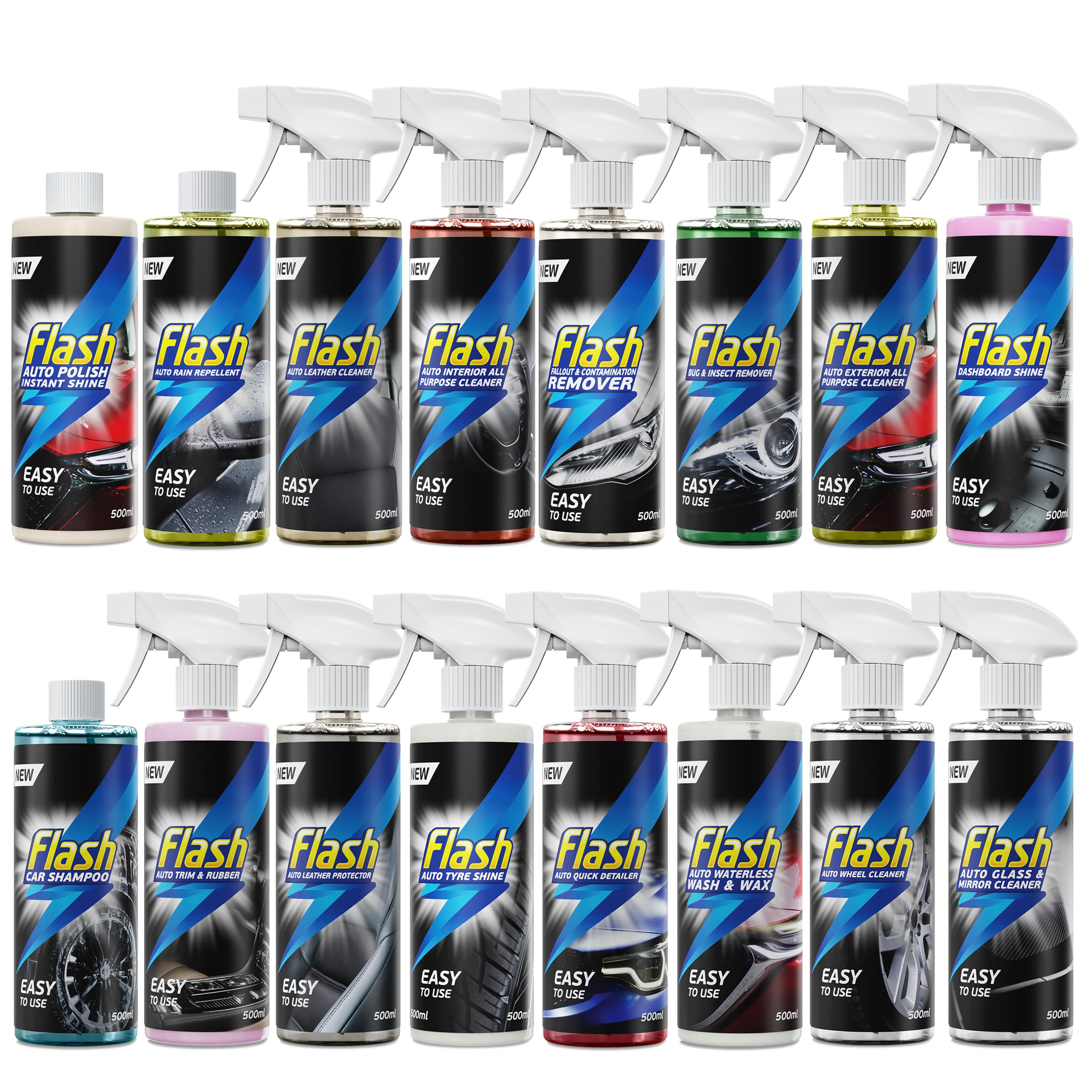 FLASH Ultimate Clean Bundle 16x500ml Exterior Interior Full Range Easy-To-Use Car Cleaning Products