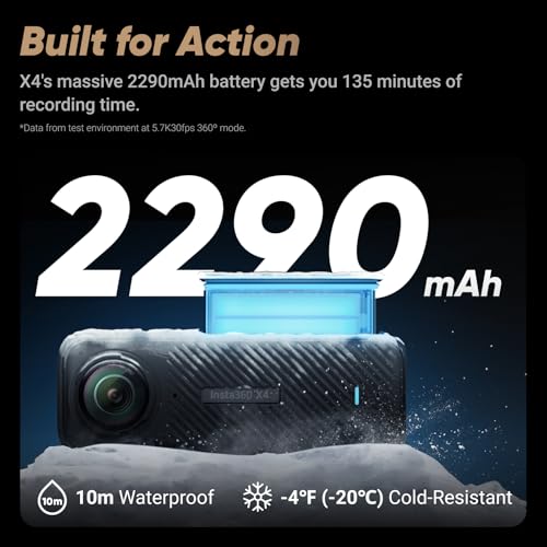 - IMPROVED 2290MAH BATTERY, FAST CHARGING – Compared to Insta360 X3, X4 offers 67% longer run time. Capture up to 135 minutes on one charge, with fast charging to get back out there faster than ever.