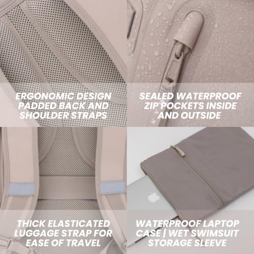 28L. This bag will fit any size Manao Changing Robe, with room to spare for extra gear. Inside, you’ll find a waterproof, removable laptop case that doubles as a zipped pouch for wet swimwear—keeping your wet and dry items separate.