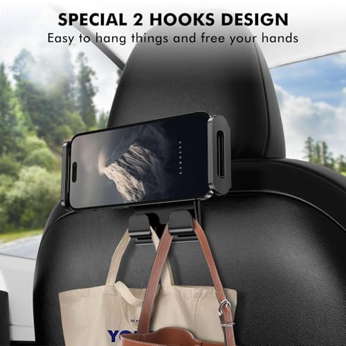 - Practical hooks: the rear seat tablet holder comes with 2 hooks, you can hang some needed snacks or tools, such as data cables, umbrellas, bags, etc. when watching videos