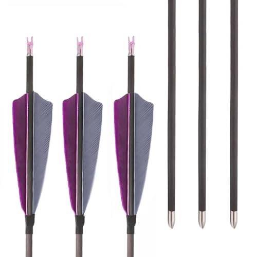 PHILOCS 12 pcs ID 4.2mm Pure-carbon Arrow Spine 300 400 500 600 700 800 900 1000 Hunting Arrow, with 4″ Purple Grey Turkey Feather, for Recurve Bows Compound Bow Archery