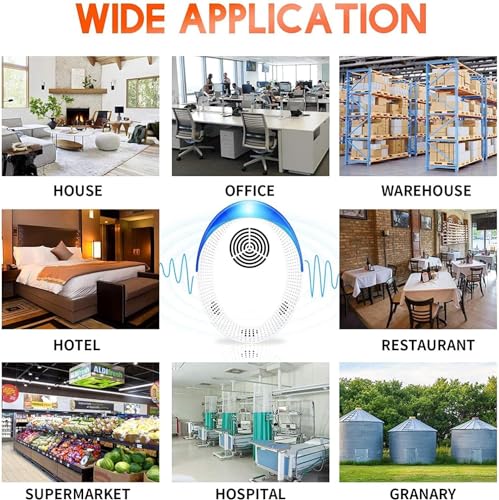 - Unique Technology: Ultrasonic Pest Repeller using intelligently three-layered bionic wave, it works by emitting a disorienting pulse, which directly affect each pests the neurological auditory and immunity , keeps pests away from your home or office, it's suit for house, warehouse, office, hotel.