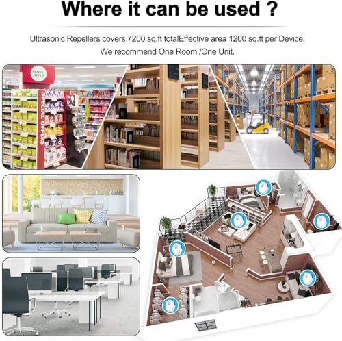 - Wide coverage: The pest repellent gets coverage up to 115 m2. You should use one unit per a room to see the best result because the ultrasonic cannot pass through walls or solid objects. Indoor spaces that are suitable for this pest repeller plugin ultrasonic are house, garage, office, company, restaurant, warehouses, etc.